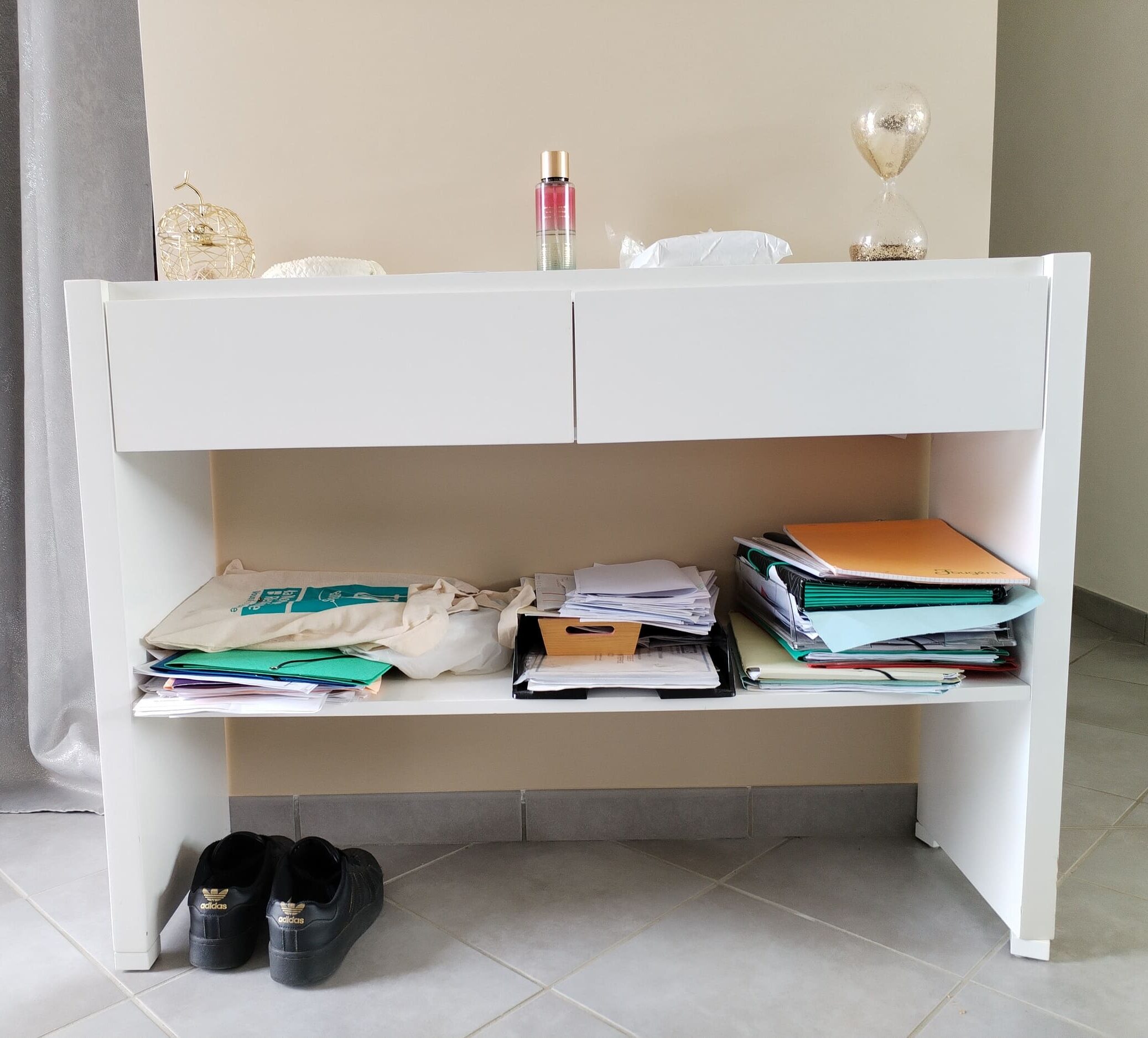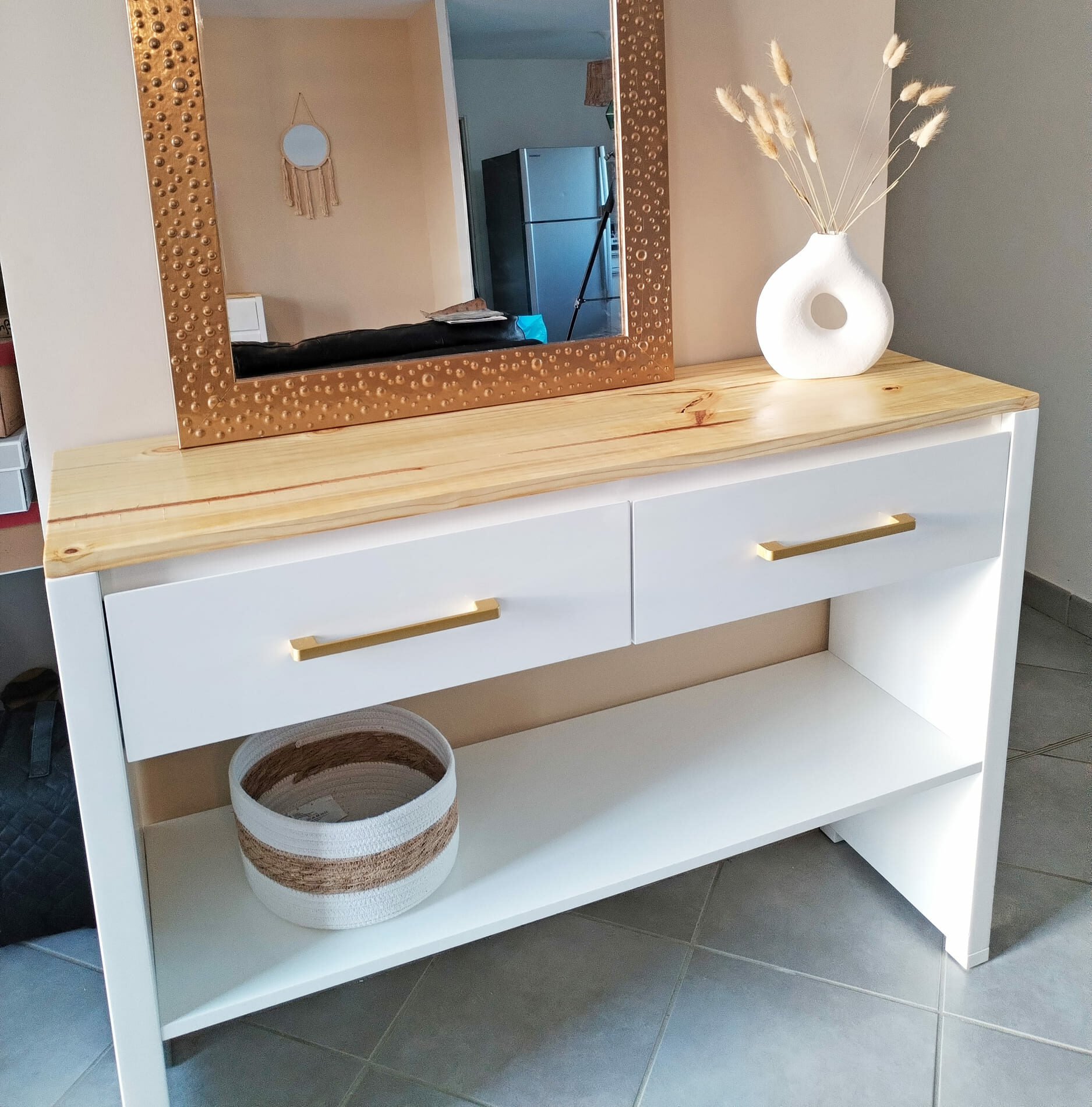 - L’upcycling de deux meubles blancs, qui ne plaisaient plus à Christelle : une transformation créative et durable, pour leur donner une seconde vie tout en réduisant l’impact environnemental.