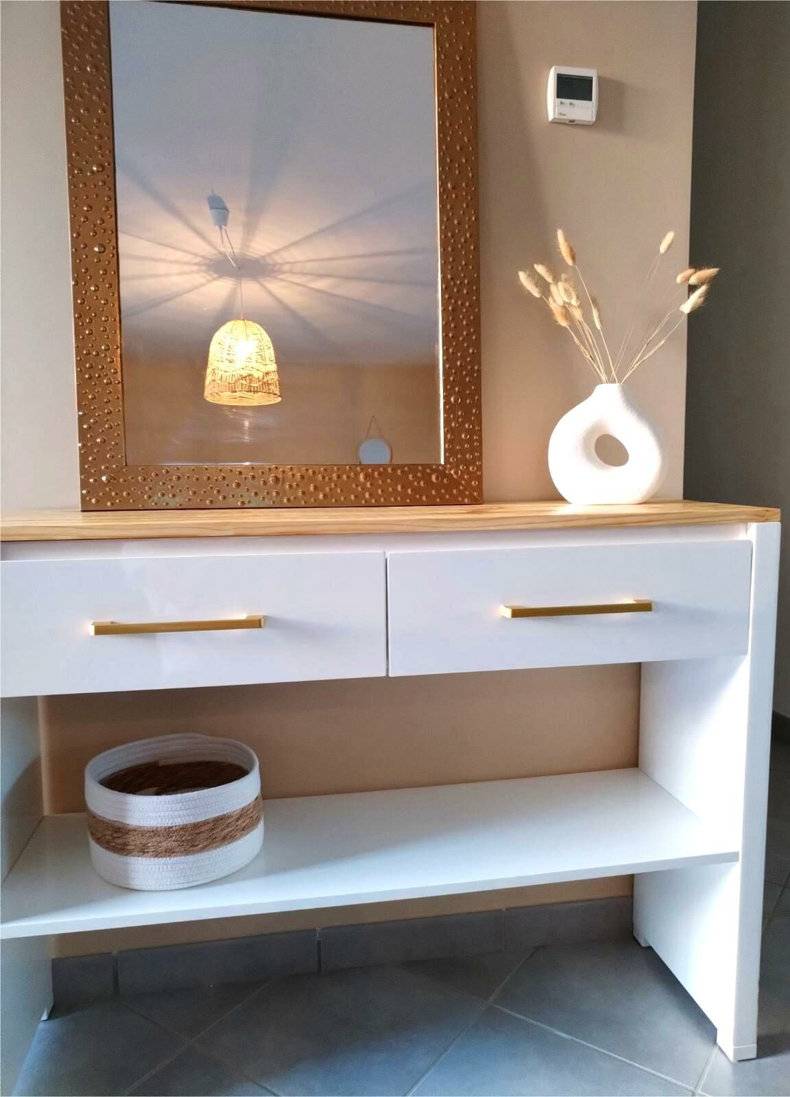 - L’upcycling de deux meubles blancs, qui ne plaisaient plus à Christelle : une transformation créative et durable, pour leur donner une seconde vie tout en réduisant l’impact environnemental.